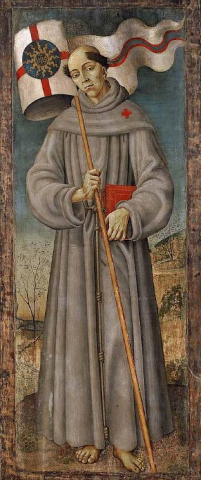 San Juan de Capistrano, en un retablo de 1485 que se conserva en el museo nacional de L'Aquila.
