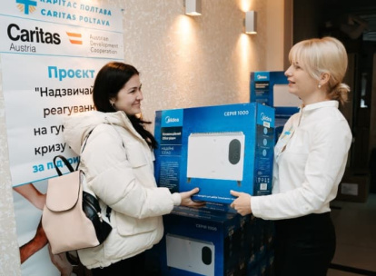 Cáritas Poltava reparte estufas en noviembre, recibidos de Caritas Austria y de la ayuda al desarrollo del estado austriaco.