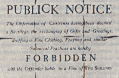 En el decreto del Parlamento se podía leer: “habiéndose juzgado la celebración de la Navidad un Sacrilegio, el intercambio de regalos y felicitaciones, el vestir con ropas bonitas, las fiestas y otras prácticas satánicas similares quedan prohibidas”.