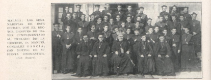 HOY, 4 DE ENERO, ES LA FIESTA LITÚRGICA DE SAN MANUEL GONZÁLEZ, que desde el Cielo ruegue por la Iglesia de España. En la fotografía publicada por La Hormiga de Oro, aparecen los seminaristas de Málaga "cumplimentando al Prelado" en su onomástica. Era el 1 de enero de 1931. Los días más amargos en la vida de san Manuel estaban a punto de llegar.