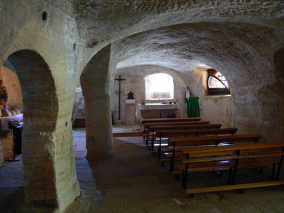 La primera data de finales del siglo VI hasta el IX. En ella se encuentra la conocida como cámara del eremita, el ábside primitivo con una cruz griega tallada y un arco de herradura. También contiene una cámara funeraria en la cual se hace visible cómo fue ampliándose, desde la cueva inicial, por medio de arcos que van creciendo en tamaño.