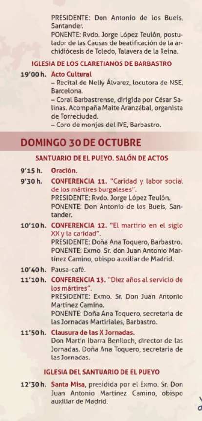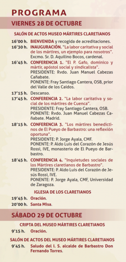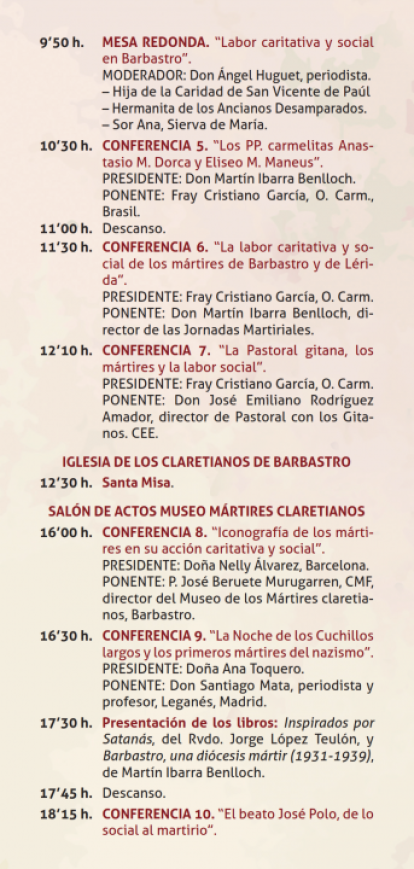 Programa e inscripción de las X Jornadas Martiriales de Barbastro