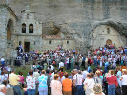 Iglesia de San Tirso y San Bernabé:La iglesia de San Tirso y San Bernabé se encuentra dentro del Monumento Natural de Ojo de Guareña, en la localidad de Merindad de Sotoscueva, que pertenece a Burgos. Este enclave, el complejo kárstico más grande de España, está formado por 18 cuevas. El templo se sitúa en una de estas cuevas.. . Complejo kárstico en el que se ubica la iglesia de San Tirso y San Bernabé.. . Algunos expertos datan la construcción de la iglesia o ermita de San Tirso y San Bernabé entre los siglos VIII y IX. Para otros, en cambio, pertenece al siglo XIII. De lo que no cabe ninguna duda es de que la cueva donde se encuentra la ermita y las adyacentes han sido habitadas desde tiempos inmemoriales. Existen evidencias de pinturas rupestres, grabados e improntas de pies descalzos dejadas por un grupo humano del paleolítico.. . Iglesia de San Tirso y San Bernabé.. . La fachada de la iglesia rupestre está formada por sillares. Corona esta fachada una espadaña. Al lado del templo existe una sala en la cual se realizaban las reuniones del ayuntamiento hasta que en 1924 se trasladó a la localidad de Cornejo.. . Fachada de la iglesia de San Tirso y San Bernabé.. . Como en el caso de otras iglesias rupestres españolas, el origen de esta construcción fue un eremitorio que a lo largo del tiempo se fue ampliando hasta convertirse en el templo actual. Al principio estuvo solamente bajo la advocación de San Tirso, pero a partir del siglo XVIII se unificó con la de San Bernabé.. . Interior de la iglesia de San Tirso y San Bernabé.. . El interior de la iglesia de San Tirso y San Bernabé se compone de una única nave con un techo en forma de bóveda de cañón apuntada. Destacan dentro del templo las pinturas murales de los siglos XVIII y XIX que relatan los milagros y martirios de ambos santos.. . Pinturas murales.. . Desgraciadamente, algunas de estas pinturas han sufrido deterioros por culpa de las filtraciones de agua que se producen en la cueva. Además de éstas pinturas, la iglesia también contiene una talla de San Tirso del siglo XIII situada en el altar, algunos frescos y un retablo.. . Pinturas, retablo y talla religiosa.. . En la actualidad se celebra en ella la romería de San Bernabé que es capaz de reunir a unos tres mil peregrinos para participar en la Eucaristía, los diferentes juegos populares, el baile y la música.. . Romeria. . . Existe en Cantabria un museo dedicado a la arquitectura rupestre religiosa española: El Centro de Interpretación del Rupestre. Este museo ofrece al visitante un recorrido divulgativo de la arquitectura rupestre a través de un discurso museográfico que aborda el proceso de cristianización de Cantabria, el fenómeno del eremitismo y las prácticas monásticas de la época, las necrópolis y las costumbres funerarias de esos siglos.. Otros artículos de AyC dedicados a las iglesias rupestres son: Lalibela: iglesias talladas en la roca (I) y Lalibela: iglesias talladas en la roca (II) . Fotografías tomadas de: Turismo de Cantabria, Todopueblos, Románico Castillo y León, José Miguel Martínez, ArteHistoria, Asturnatura, Arteguias, Viajeuniversal, Revista Anales, PueblosLugaresRincones, Viajesocultos, FotosBurgos, Leyendasdecastillos, Javier Prieto Gallego y Wikipedia..