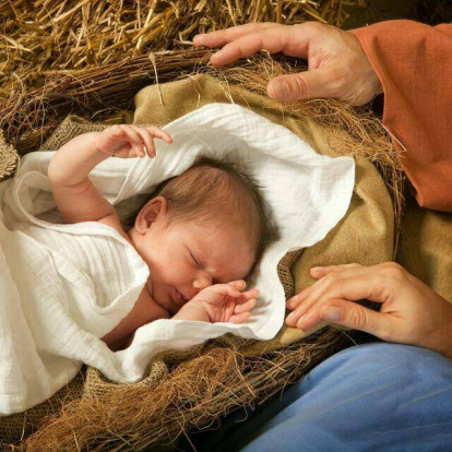 No me mires así, no estoy p’allá. Los cristianos creemos que Cristo está vivo porque resucitó, y todo lo suyo es actual y pasa en presente. En cada misa Él mismo se hace presente con todo su ser en el pan y en el vino. En el sagrario está Él, vivo en la Eucaristía. En la confesión Él es quien perdona mis pecados y me absuelve y me bendice valiéndose de las manos y la voz de un sacerdote. Y en Navidad Él nace.