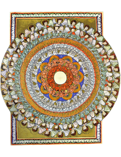 Si nos fijamos en la reproducción de la miniatura de santa Hildegarda representando los corros de los ángeles, cada uno de nosotros debería verse en el centro de los coros angélicos. Si estamos en el centro de esas fuerzas de origen divino, somos el reflejo visible, como en un espejo, de la imagen y semejanza de Dios que es invisible. No podemos aspirar a un don mayor. El Creador tiene la capacidad de conducirnos hasta la sanación completa si nosotros no le ponemos impedimentos. Como decía Santa Hildegarda: “la curación es alcanzar un estado de salud más armónico y elevado del que teníamos antes de enfermar”.
