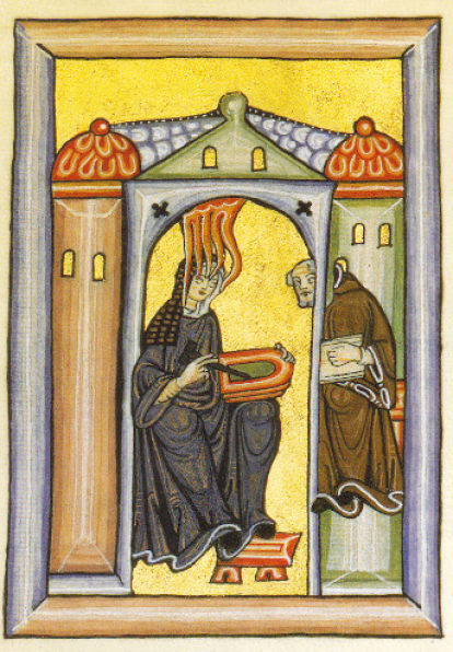 Esta miniatura está comentada por la hermana Maura Zátonyi OSB que pertenece a la comunidad benedictina del monasterio de Eibingen.