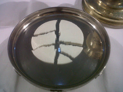 - incluso si esa hostia tiene el pequeño tamaño de las habituales. Perfectamente se puede partir en 5 trozos -con cuidado, con devoción, con amor- más el pequeño trozo que se deposita en el cáliz (el rito de la conmixtio). Volvamos a mirar la foto del artículo: