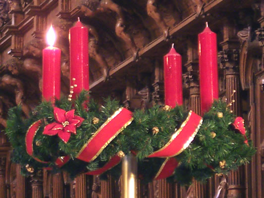 -las flores son moderadas en el exorno, para que todo sea esplendoroso en el ciclo de Navidad; por ejemplo, la misma corona de Adviento, si se hace, se prepara con ramas verdes;