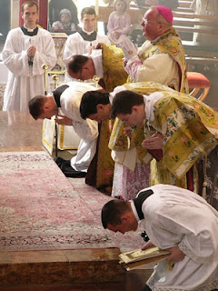 3) Entonces el sacerdote se inclina profundamente (IGMR 143), y eso es algo más que inclinar la cabeza; se inclina profundamente (la medida clásica: las manos deben llegar a las rodillas, ¡¡inclinados ante Dios!!) y cuando ya se ha inclinado, recita con unción (lentamente al menos) esta fórmula en secreto, sabiendo bien lo que dice y ante Quién está orando: