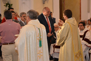“No se puede "comer" al Resucitado, presente en la figura del pan, como un simple pedazo de pan. Comer este pan es comulgar, es entrar en comunión con la persona del Señor vivo. Esta comunión, este acto de "comer", es realmente un encuentro entre dos personas, es dejarse penetrar por la vida de Aquel que es el Señor, de Aquel que es mi Creador y Redentor. La finalidad de esta comunión, de este comer, es la asimilación de mi vida a la suya, mi transformación y configuración con Aquel que es amor vivo. Por eso, esta comunión implica la adoración, implica la voluntad de seguir a Cristo, de seguir a Aquel que va delante de nosotros” (Benedicto XVI, Hom. en el Corpus Christi, 26-mayo-2005). Esta participación de los fieles en la Eucaristía santísima es del todo especial. Requiere un acto de fe, esperanza y caridad; implica conciencia clara y devoción; supone y expresa la adoración a Cristo realmente presente[2]. Por eso no es indiferente el modo de comulgar respetuoso y adorante y la forma misma, por parte de los ministros, de distribuir la sagrada comunión. El respeto, la adoración, incluso la solemnidad, deben acompañar este momento santo, alejando lo informar, lo trivial, lo apresurado, propiciando que cada fiel vea la Hostia cuando se le muestra, pueda responder “Amén” consciente de hacer una profesión de fe, y comulgue orando y con cuidado. El Misal romano, en su Introducción general, nos introduce bien en el misterio de la comunión eucarística, su sentido y su realización litúrgica. “Por la fracción del pan y por la Comunión, los fieles, aunque sean muchos, reciben de un único pan el Cuerpo, y de un único cáliz la Sangre del Señor, del mismo modo como los Apóstoles lo recibieron de las manos del mismo Cristo” (IGMR 72). Los fieles participarán plenamente si pueden comulgar, es decir, si pueden acercarse al Sacramento debidamente dispuestos: “Puesto que la celebración eucarística es el banquete pascual, conviene que, según el mandato del Señor, su Cuerpo y su Sangre sean recibidos como alimento espiritual por los fieles debidamente dispuestos” (IGMR 80). La comunión, en el rito romano, es preparada por diversos ritos: -Padrenuestro-Paz-Fracción del Pan consagrado y conmixtio-Invitación a la comunión con las palabras de humildad del centurión (“Señor, no soy digno…”) En la medida de lo posible, se visibiliza la participación en ese mismo Sacrificio de Cristo si los fieles pueden comulgar con el Pan consagrado en esa Misa: “Es muy de desear que los fieles, como está obligado a hacerlo también el mismo sacerdote, reciban el Cuerpo del Señor de las hostias consagradas en esa misma Misa, y en los casos previstos (cfr. n. 283), participen del cáliz, para que aún por los signos aparezca mejor que la Comunión es una participación en el sacrificio que entonces mismo se está celebrando” (IGMR 85).