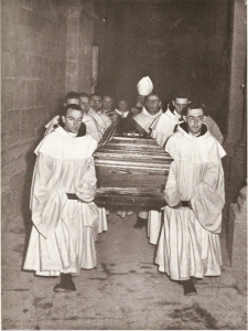 Mateo Gregorio Quatember, abad de la orden cisterciense, nació en 1894 en Bohemia. En 1950 fue elegido abad general de la orden. Por su expresa voluntad quiso ser enterrado en el monasterio de Poblet, tras un funeral en el Real Monasterio de Santa María de Valldoncella. El 17 de febrero de 1953 sus restos fueron recibidos en la puerta dorada del monasterio populetano, donde también esperaba el abad mitrado de Montserrat.