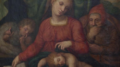 Ambas obras muestran a la Virgen María, a San José, al Niño Jesús durmiente y a San Juan Bautista. Ante la coindicencia, el pastor contactó con un experto en Miguel Ángel que iba a ir de forma inminente hasta su iglesia para autentificar el cuadro.