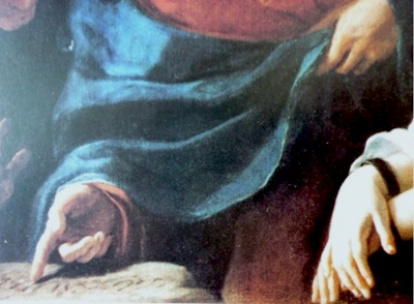 En todas las obras del artista, Jesús presenta siempre la misma fisionomía y la misma vestimenta. El pintor se concentra sobre la figura humana como vehículo de sentimientos; más escaso es el interés por la ambientación espacial, reducida al mínimo. En los cuadros que presento, uno conservado en L’Aquila y el otro en Palermo, Preti no elige relatar el momento en el que Jesús deja a los escribas sin palabras pronunciando la famosa frase “Aquel de vosotros que esté sin pecado, que le arroje la primera piedra”, sino el instante posterior, el diálogo “terapéutico” entre Jesús y la mujer.