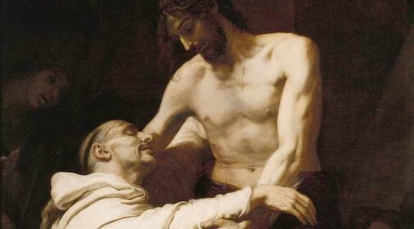 En él vemos a San Bernardo que se entrega al abrazo de Cristo que, en la cruz, ha “descolgado” la parte superior de su cuerpo para acoger a San Bernardo. Me impresionaron, cuando lo vi en el Prado, la posición del brazo derecho del Santo, totalmente abandonado en el de Cristo, que con su mano lo sujeta, y la expresión de su rostro, que apoyado en el brazo derecho del Señor expresa una completa confianza, un amor pleno y una felicidad total. ¡No hay mayor descanso que ese abrazo!