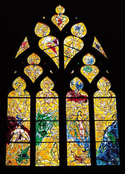Mientras lo leía –y traducía– me venían a la mente algunas de las maravillosas vidrieras y rosetones de cualquiera de las catedrales góticas del mundo. Pero no solo. También me venían a la mente las de Chagall en Saint-Paul-de-Vence o en la Catedral de Reims. Recordaba el efecto que me causaban cuando la luz penetraba a través de ellas en el interior del templo.