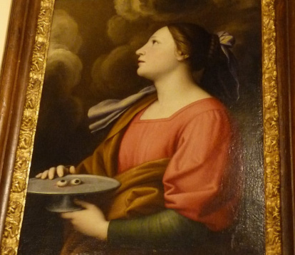 La Santa Lucia de Il Sassoferrato, con sus ojos en una bandeja... pero en los martirologios, entre muchas torturas, no dicen nada de los ojos.