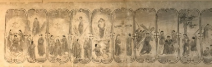 El lienzo presenta oraciones escritas en latín junto con su traducción al japonés. Además, se pueden ver escenas de la vida de Jesús y de la Virgen María, en concreto quince escenas en las que los personajes aparecen vestidos al modo japonés.