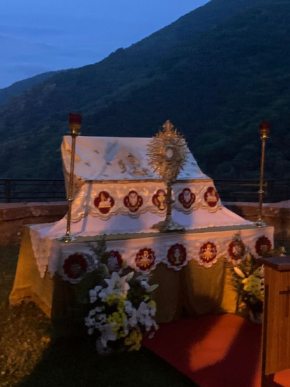 Pocas experiencias tan vivificantes hay en este mundo como adorar a Dios en la noche. Si además se hace en plena naturaleza, a la luz de la Luna, rodeado de montañas y en un silencio acogedor el alma se llena del Dios vivo al que ha venido a adorar. Recibir la bendición desde lo alto de una montaña y bendecir desde allí a todas las ciudades y pueblos en unión a la Virgen de Valvanera, en cuya casa se ha celebrado la eucaristía, es algo que enciende el corazón de todos los presentes. Es lo que vivo ante la custodia que bajo palio es llevada hasta el altar para hacer allí la visita y la bendición. El lugar, el momento y la oración une a todos en un mismo pensar: ¡Qué gran regalo estar con el Señor en medio de la noche en el monte como cuando Él mismo pasaba las noches en oración!