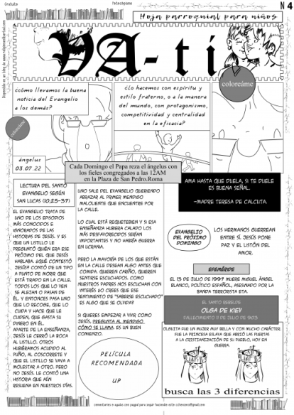 Hoja Parroquial infantil "VA-ti" para el domingo 10 de Julio 2022