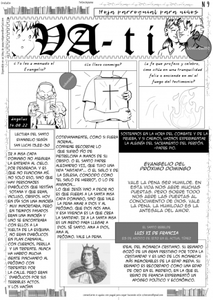 Hoja Parroquial infantil "VA-ti" para el domingo 21de Agosto 2022