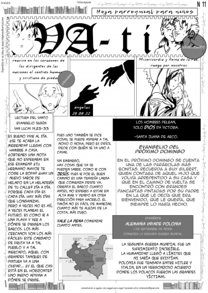 Hoja Parroquial infantil "VA-ti" para el domingo 04 de Septiembre de 2022
