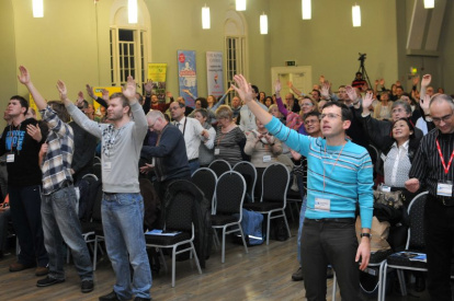 La mayoría de los asistentes eran gente del mundo católico cercano a la Renovación Carismática, aunque más bien del mundo de las comunidades surgidas a raíz de la misma, el cual es muy diferente en su expresión y contenidos a la Renovación a la que estamos acostumbrados aquí.