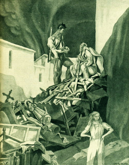 Este dibujo, que sí pertenece a Carlos Sáenz de Tejada, es el único -de temática religiosa- que aparece en el volumen III, página 187, con el título: "...Este satánico desfile va empavesado con residuos de su pillaje sacrílego...".