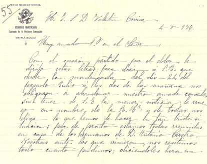 Con el corazón partido por el dolor le dirijo estas letras, para decirle que desde la madrugada del día 24 del pasado julio a las dos de la mañana nos obligaron a abandonar nuestro amado convento, sin tener de su Excelencia la menor noticia; le ruego en nombre de la Rvda. Madre y de todas nos diga lo que hemos de hacer en tan triste situación; por de pronto estamos todas reunidas en casa de los hermanos de don Antonio Castro.