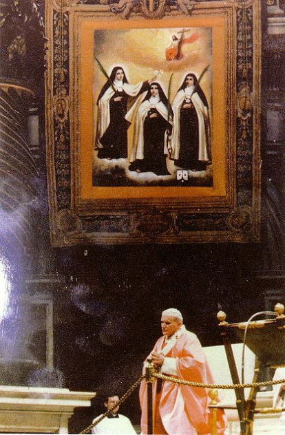 El 29 de marzo de 1987 fue una jornada realmente histórica en la trayectoria de las Causas de Canonización españolas: el beato Juan Pablo II elevaba al honor de los altares a tres religiosas y a dos sacerdotes, testigos los cinco de la fe y de la santidad que ha florecido siempre en tierras españolas. Eran las diez de la mañana cuando el Romano Pontífice, en su cátedra bajo el impresionante baldaquino de Bernini, sobre la tumba de San Pedro, pronunció los nombres de los cinco Siervos de Dios: María del Pilar de San Francisco de Borja, Teresa del Niño Jesús y de San Juan de la Cruz, María de los Ángeles de San José, Marcelo Spínola y Maestre y Manuel Domingo y Sol, declarando que en adelante se les llamase Beatos y autorizando su culto en los lugares y del modo establecido por la ley eclesiástica. Las tres religiosas del Carmelo de San José de Guadalajara se convertían en las primeras beatificadas del inmenso grupo de mártires españoles de la persecución religiosa de 19311939.