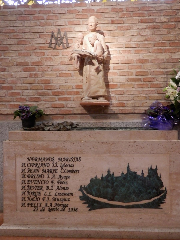 Ayer, 30 de octubre, el Colegio Santa María - Maristas de Toledo celebró la fiesta de los Hermanos Maristas Mártires de Toledo durante la persecución religiosa del verano de 1936: Abdón, Cipriano, Bruno, Anacleto, Eduardo, Félix Amancio, Juan María, Evencio, Javier Benito, Jorge Luis y Julio Fermín (bajo estas líneas, cerámica que, tras la beatificación de 2013, se colocó en la fachada principal del colegio toledano).