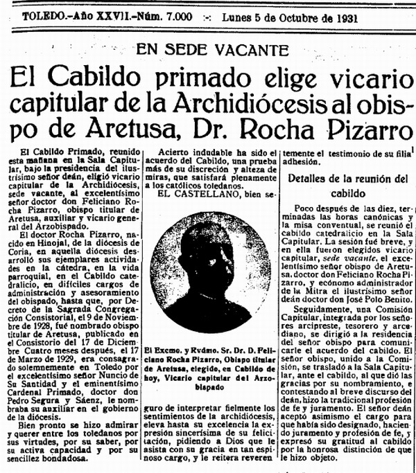 El Castellano del sábado 3 de octubre de 1931 titula así una breve noticia sobre la renuncia del Cardenal Pedro Segura: