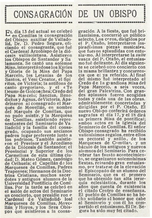 El 7 de marzo de 1916 la Santa Sede le nombra obispo titular de Apolonia y auxiliar del Cardenal Cos de Valladolid. A la muerte de este, en 1919, le designaron vicario capitular y un año más tarde fue preconizado para la diócesis de Coria de la cual tomó posesión el 12 de octubre. Aquí acompañó, en 1922, al rey Alfonso XIII en su visita a Las Hurdes. De Coria pasó a Burgos como arzobispo en 1926 y un año más tarde fue enviado a Toledo por Pío XI, que también le nombró Cardenal.