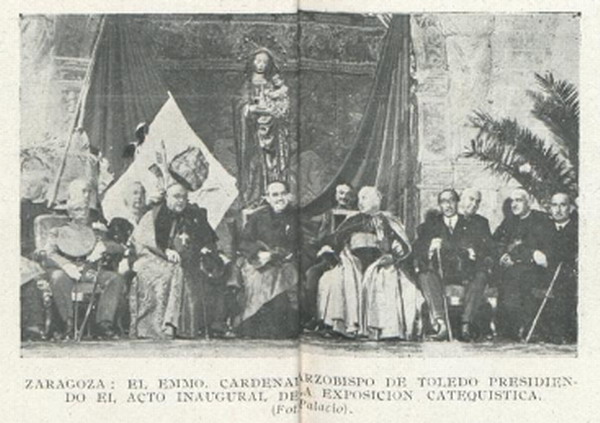 El 16 de octubre de 1930 La Hormiga de Oro dedica dos páginas completas al III Congreso Nacional Catequístico que se celebra en Zaragoza. Bajo esta foto podemos leer: El Emmo. Cardenal Arzobispo de Toledo presidiendo el acto inaugural de la exposición catequística.
