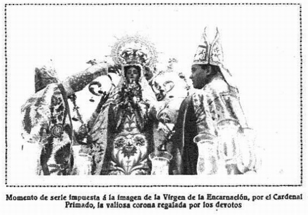 Coronación de la Virgen de la Encarnación en Carrión de Calatrava (Ciudad Real). Mundo Gráfico publica el 22 de mayo de 1929 esta noticia: Recientemente se ha efectuado en Carrión de Calatrava, laborioso y pintoresco pueblo de la Mancha, el acto solemnísimo de la coronación de la Virgen de la Encarnación, Patrona de dicho pueblo.