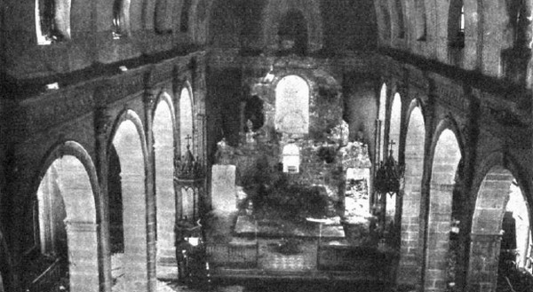 Villa del Río (Córdoba).- Un aspecto del interior de la iglesia parroquial, después del incendio que destruyó totalmente cuadros, imágenes y un crucifijo de incalculable mérito por su antigüedad.