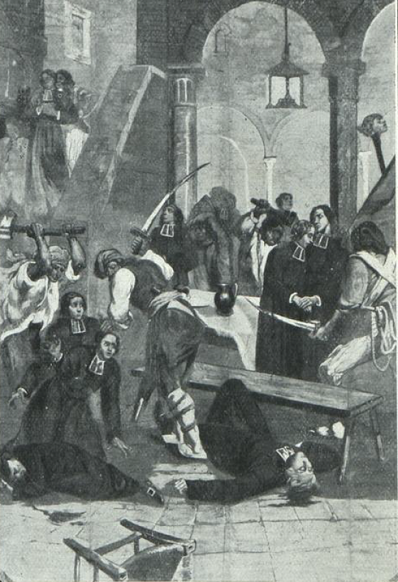 A fines de agosto de 1792, los revolucionarios en toda Francia se enfurecieron por el levantamiento de los campesinos en La Vendée y los éxitos de las armas de Prusia, Austria y Suecia, en Longwy. Inflamados por los fogosos discursos contra los realistas y el clero, unos mil quinientos hombres de iglesia, laicos, mujeres y niños, perecieron en una matanza gigantesca. Ciento noventa y una de estas víctimas fueron beatificadas como mártires en 1926.