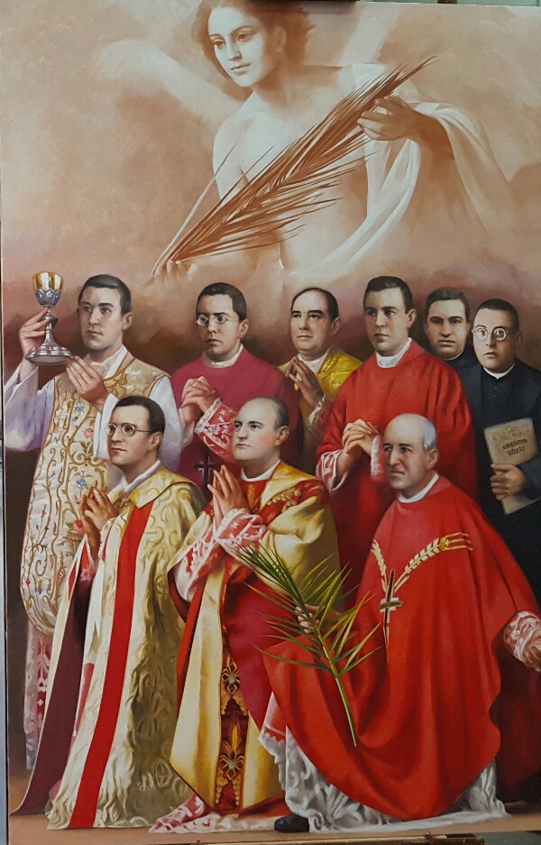 Con motivo del cincuentenario de la creación del templo, se editó esta estampa con el grupo de los sacerdotes que sufrieron el martirio en dicha localidad: