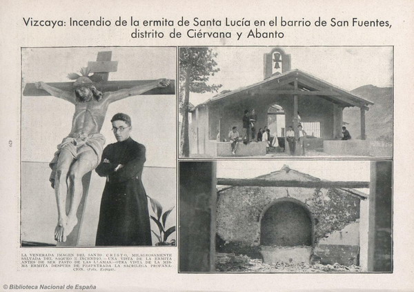 VIZCAYA: INCENDIO DE LA ERMITA DE SANTA LUCÍA EN EL BARRIO DE SAN FUENTES, DISTRITO DE CIÉRVANA Y ABANTO