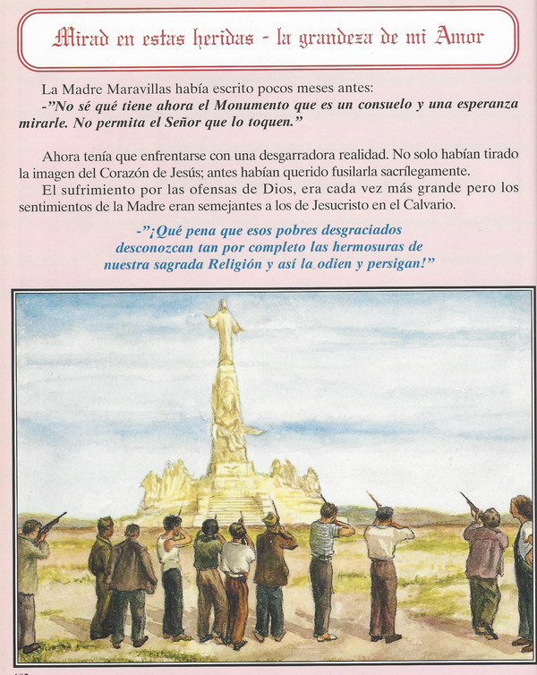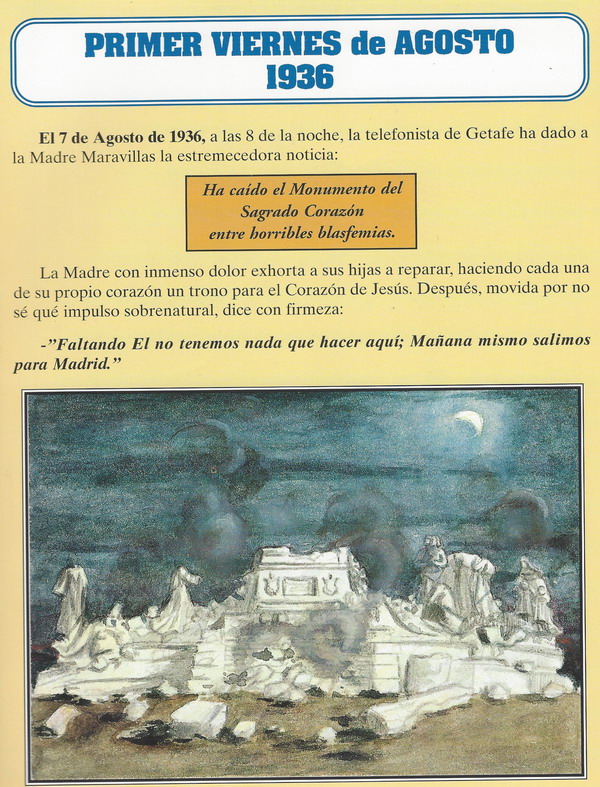 El 7 de Agosto de 1936 Santa Maravillas de Jesús y sus hijas tienen que sufrir el inmenso dolor de ver caer el monumento del Corazón de Jesús del Cerro entre horribles blasfemias.