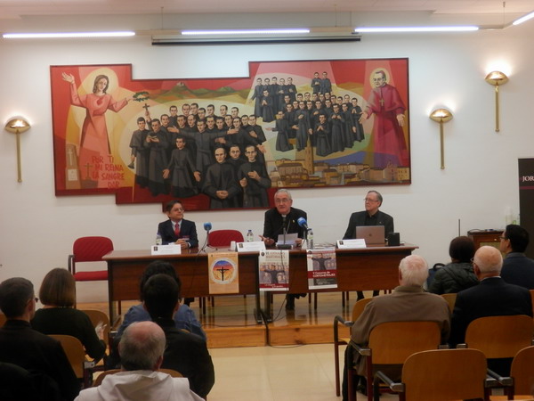 Tras la primera mesa redonda: Evangelizar con los mártires ha tenido por ponente al padre Pablo Eduardo di Cesare, IVE, Superior del monasterio del Pueyo de Barbastro y del padre Jorge Ayala Martínez, cmf, profesor de la Universidad de Zaragoza.