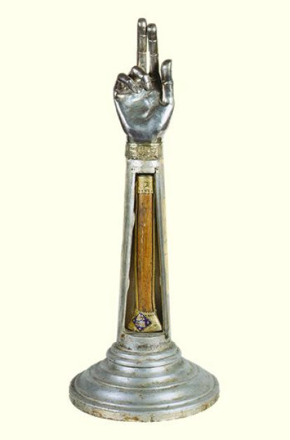 Sobre estas líneas el relicario con un brazo y una mano de San Jorge que se custodia de la Catedral de Valencia. No os olvidéis de rezar por el Papa Francisco que hoy celebra su onomástica.