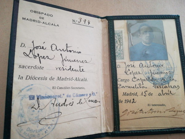 Monseñor Leopoldo Eijo Garay, obispo de Madrid-Alcalá, el 13 de junio de 1939 le concedió licencias para confesar durante 5 años y el 20 de junio de 1939 lo nombró capellán de las carmelitas descalzas de Sta. Ana y S. José (C/Torrijos, 73). Vivía en C/Conde de Peñalver, 73, 1º a 19 de mayo de 1941.