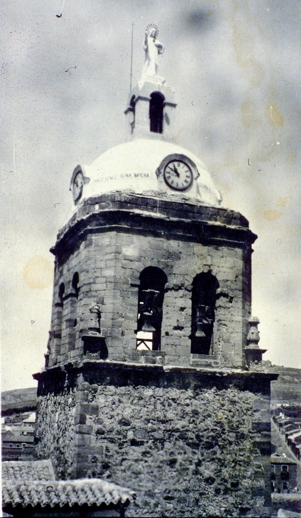 D. Narciso (sobre estas líneas) vive gozoso la consagración de Puertollano al Sagrado Corazón de Jesús, el 29 de junio de 1930, coronando la torre de la Iglesia de la Asunción una gigantesca imagen que se divisaba desde todos los puntos de la ciudad, por iniciativa del párroco D. Joaquín Roldán Fernández, que sería mártir de la persecución religiosa en Miguelturra, el 3 de septiembre de 1936. Esta imagen sería destruida en julio de 1936.