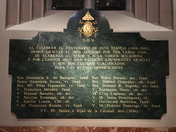 Estas son las lápidas que lo recuerdan dentro del templo de La Milagrosa: