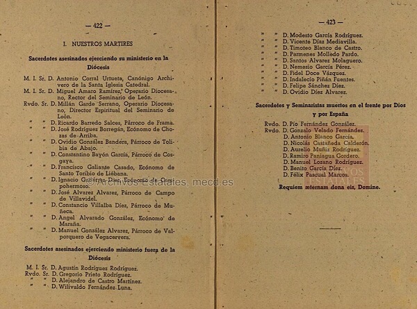 SACERDOTES LEONESES ASESINADOS EJERCIENDO EL MINISTERIO EN LA DIÓCESIS