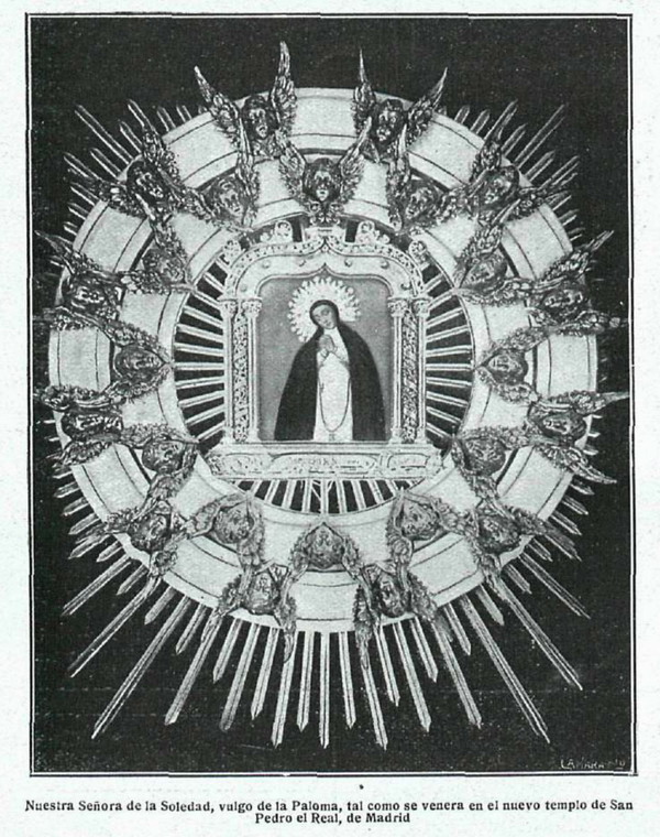 LA VIRGEN DE LA PALOMA es una de las advocaciones de María Santísima más querida por los madrileños. Sin ser la patrona oficial de dicha villa (lugar que ocupa la Almudena) es venerada desde finales del siglo XVIII. La imagen de la Virgen es un lienzo en lugar de la tradicional talla. El cuadro se encuentra en el centro de un retablo situado en la parroquia de la Virgen de la Paloma y de San Pedro el Real, situada en la calle de la Paloma nº 19, en el barrio de La Latina, teniendo también otra entrada por la calle de Toledo nº 98.