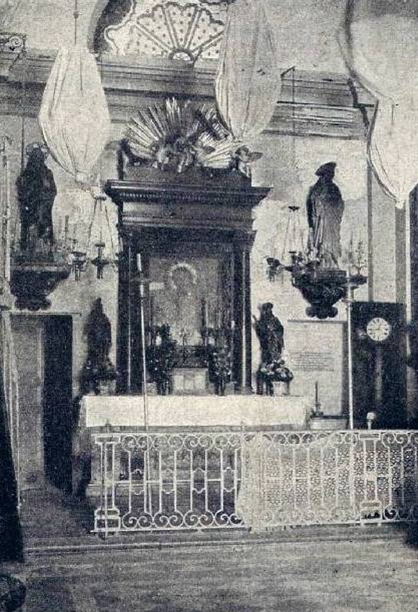 Bajo estas líneas, exterior e interior de la primera iglesia dedicada a La Paloma.