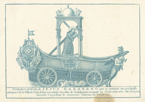 El traslado de la milagrosa imagen de Jesús, desde la iglesia parroquial a su ermita, y que tuvo lugar inmediatamente después de terminada la solemne misa mayor, constituyó como siempre, un acto apoteósico, inenarrable, digno de ser presenciado por propios y extraños; algo que habla muy alto en pro de los acendrados sentimientos religiosos del pueblo de Urda y de los comarcanos, pues no sólo somos nosotros los que vitoreamos y aclamamos al Cristo de nuestros amores, es la región manchega en toda su integridad, la que en ese día acude solícita, con nutridas representaciones, a asociarse a nuestro fervor y a prosternarse conmovida a las sagradas plantas de la efigie del Salvador del Mundo, y a prorrumpir en aclamaciones ensordecedoras que acallan y se imponen a los incesantes estampidos de centenares de voladores que sin interrupción surcan los aires, lanzados al espacio por manos piadosas…
