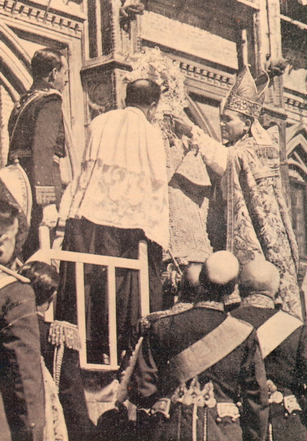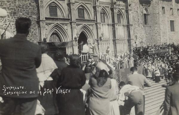 Varias veces hemos publicado esta fotografía del beato Justino Alarcón que ejerce de maestro de ceremonias en la coronación de la Virgen de Guadalupe, el 12 de octubre de 1928. Junto a él, el cardenal Segura y el rey Alfonso XIII.