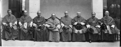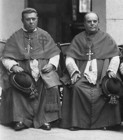 12 de octubre de 1930. Encuentro de obispos de la provincia eclesiástica de Toledo. Preside el Cardenal Pedro Segura. La foto está tomada en el Seminario Conciliar de Toledo. Abajo detalle de la foto, a la izquierda el beato Narciso, junto a él -a la derecha- el siervo de Dios Eustaquio Nieto, el obispo mártir de Sigüenza.